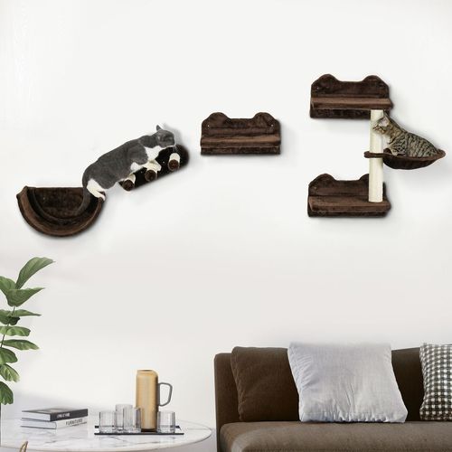PawHut 4PCs Wall Mounted Cat Tree Cat Wall Shelves W/ Scratching Post