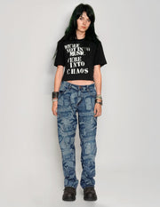 Unisex, 'Peace' print, Vintage Levi’s 501 jeans. Each pair is super rare and laser printed in our East London tailoring shop. Features our original graphic print with "Stuart Trevor, Peace in the UK, Anarchy in the World and S'x D'ugs n Rock n Roll". Grab these special jeans, while stock lasts!