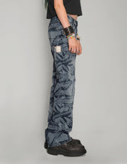 'Peace' Laser Print Jeans in Indigo