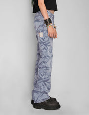 'Peace' Laser Print Jeans in Light Blue