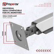 ProperAV Desk Monitor Mount Articulated Swing Arm 17''- 32'' VESA Max 100x100 White/Grey
