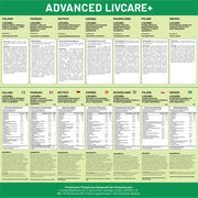Crafted with Precision: Experience the power of Advanced Livcare+ - a meticulously formulated blend of 18 essential nutrients. Featuring choline, artichoke, inositol, liquorice, burdock root, vitamin D3, vitamin C, thiamine (B1), acai berry, black garlic, turmeric powder, dandelion root, ginger root, L-glutamine, acetyl L-carnitine, and N-acetyl L-cysteine. This comprehensive formula is specifically designed to promote overall liver health.