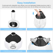 1. This spherical softbox can pop open and be ready to use in mere seconds, allowing you to set up lights, faster. Foldable lantern style, easy to open and close.