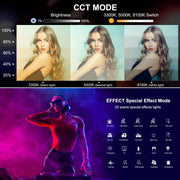 2. Multiple scene modes: 20 lighting effects can be adapted to different scenes; with adjustable brightness from 0%-100%, 2500K (warm) - 9000K (cold) color temperature switch;