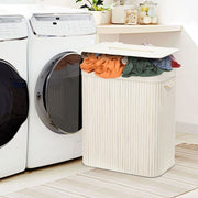 Ultimate Organizer - Rectangular Bamboo Laundry Basket, White, Divider