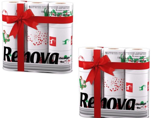 Renova 9 / 18 / 27 / 36 / 45 White Print 2 Ply Xmas Toilet Tissue Rolls