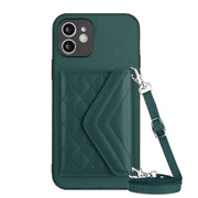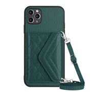 Rhombic Texture Card Bag RFID Phone Case with Long Lanyard, For iPhone 12 mini, For iPhone 11 Pro Max, For iPhone 11, For iPhone 11 Pro
