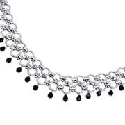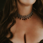 Embrace the dark side with our Sanctus O Ring Tear Drop Choker. This striking fancy link chain collar is embellished with medieval-style charms for a gothic touch. Wear it alone for a bold statement, or layer it for a dramatic and eclectic look.