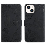 Skin Feel Butterfly Peony Embossed Leather Phone Case, For iPhone 12 Pro Max, For iPhone 13, For iPhone 13 mini, For iPhone 13 Pro