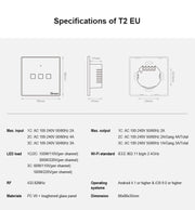 Sonoff T2 Touch 86mm Tempered Glass Panel Wall Switch Smart Home Light Touch Switch, Compatible with Alexa and Google Home, AC 100V-240V, EU Plug, 86mm/ 2 EU Plug
