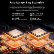 6. With up to 16GB RAM (6GB LPDDR5 + 10GB virtual) and 128GB UFS 3.1 storage, the T60AI ensures fast access to data and ample space for apps and media, supporting efficient multitasking.