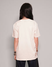 Women's ecru t-shirt crafted from 50% GOTS certified organic cotton and 50% recycled organic cotton from factory, cutting waste. Relaxed fit, featuring a custom screen print of an ST favourite Rock n Roll icon mugshot with "King" lettering over top, paying homage to a true music legend.