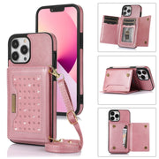 Three-fold RFID Leather Phone Case with Lanyard, For iPhone 13 Pro Max, For iPhone 14, For iPhone 14 Plus, For iPhone 14 Pro