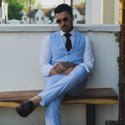 * Mens 2 Piece linen suit comes complete with waistcoat & trousers, finished in an amazing sky blue