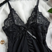 Transparent Red Sexy Lingerie Women's Underwear See Through Sleepwear Lace Nightdress And Panty Pijamas Sets Female Sexy Nighty