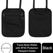 Travel Body Wallet with RFID Protection Passport Holder, Black