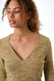 Vinita Soft Marl V-Neck Long Sleeve Top - Mustard