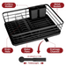 SLEEK, SPACE-SAVING DESIGN: Keep your dishes neatly stacked and accessible with this compact drying rack, designed to stand vertically and maximise kitchen storage. Its minimalist look complements modern kitchens, providing both style and practicality. EFFICIENT DRAINAGE SYSTEM: Equipped with a 360-degree rotating drainage tube and removable drip tray, this rack ensures water is directed back into the sink, keeping your kitchen countertop dry and tidy. AMPLE STORAGE CAPACITY: With plenty of space for plates, bowls, cups, and glasses, plus a removable utensil holder featuring two slots for cutlery, this rack helps organise and declutter your kitchen. HIGH-QUALITY DURABILITY: Crafted from stainless steel for a waterproof, rust-resistant finish, this rack resists scratches and discoloration, ensuring long-lasting use and easy maintenance. SIMPLE, QUICK ASSEMBLY: Easy to assemble with clear instructions, this drying rack sets up in minutes. Dimensions: L31.5 x W43 x H14cm. Package includes 1 dish rack, 1 utensil holder, and 1 drip tray with drainage channel. Available in colour: Grey, Black and White.