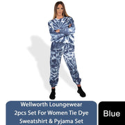 Best Quality Wellworth Women's Tie Dye Loungewear Set - Blue, 2pcs, Sweatshirt & Pyjama Set