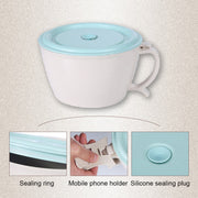 Wheat Fiber Instant Noodle Bowl Creative and Convenient Sealed Lunch Box with Mobile Phone Holder, Pink, Blue, Green