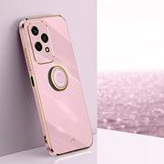XINLI Straight 6D Plating Gold Edge TPU Shockproof Case with Ring Holder, For Honor 200 Pro, For Honor Play 50, For Honor 200 Lite Global