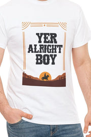 Saddle up, sugar. The “Yer Alright Boy” T-shirt is riding straight outta the dust storms of the Wild West and into your closet with guns blazing.