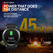 6. Power that goes the distance: The Zeblaze Stratos 3 is powered by a robust 400mAh Li-Pol battery, offering an impressive standby time of up to 45 days in power-saving mode. When in training mode, you can keep it active for up to 20 days, and with complete GPS and heart rate tracking, it sustains up to 84 hours. Even for voice calls, it provides a remarkable 545 minutes.